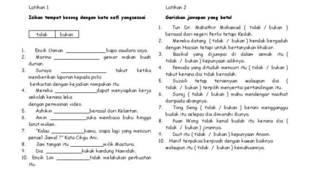 Play this game to review education. Kata nafi digunakan untuk menafikan atau menidakkan sesuatu. Info kata nafi tidak bukan kata nafi. Basikal yang dijumpai di dalam semak itu ( tidak / bukan ) kepunyaan adiknya.